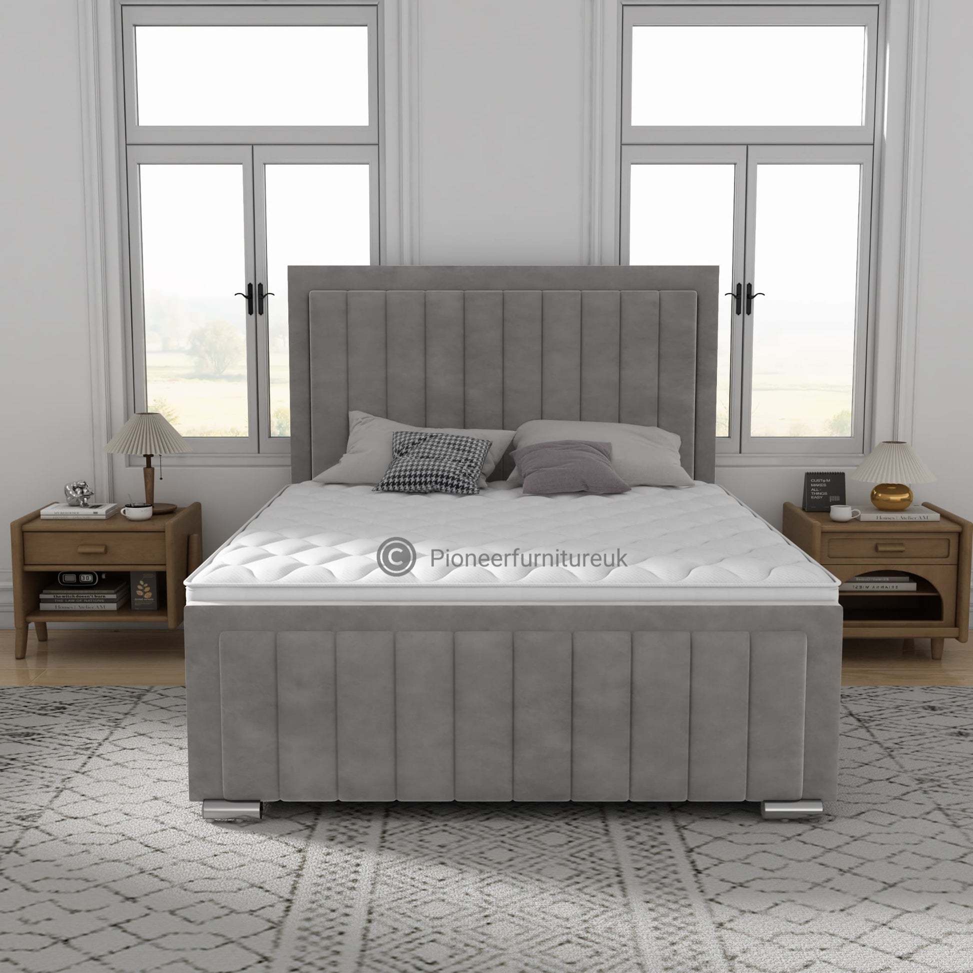 OTTOMAN STORAGE PANEL PLUSH VELVET UPHOLSTERED BED FRAME DOUBLE & KING SIZE