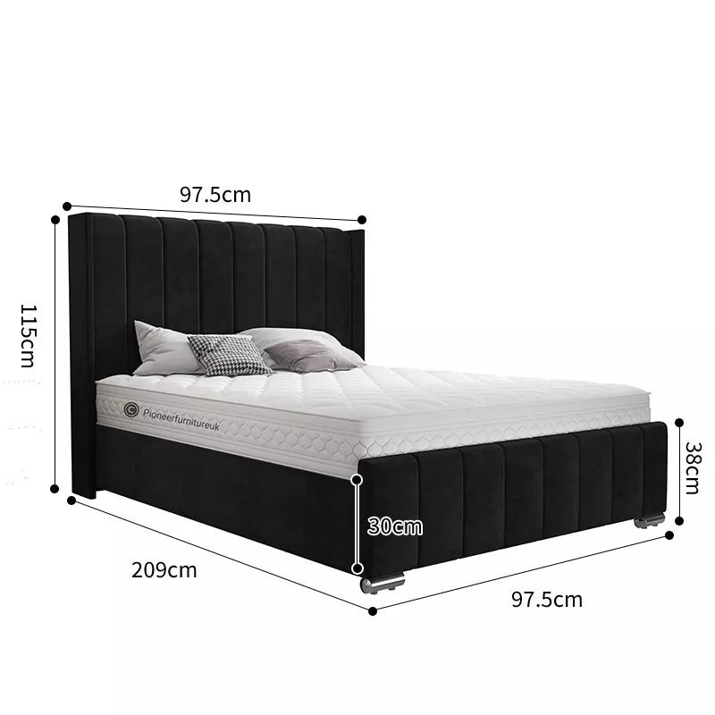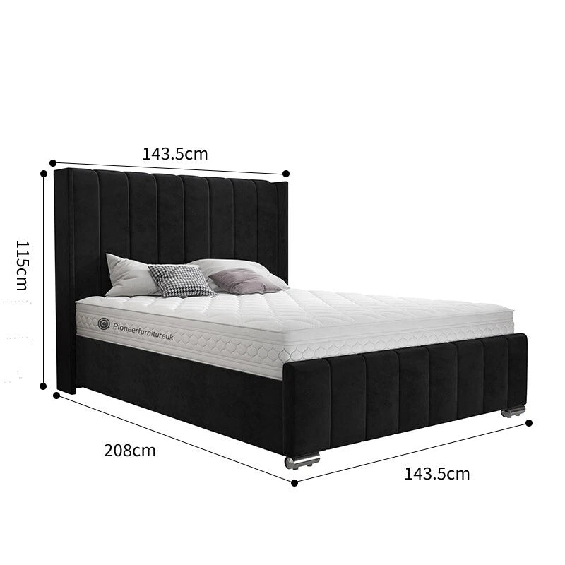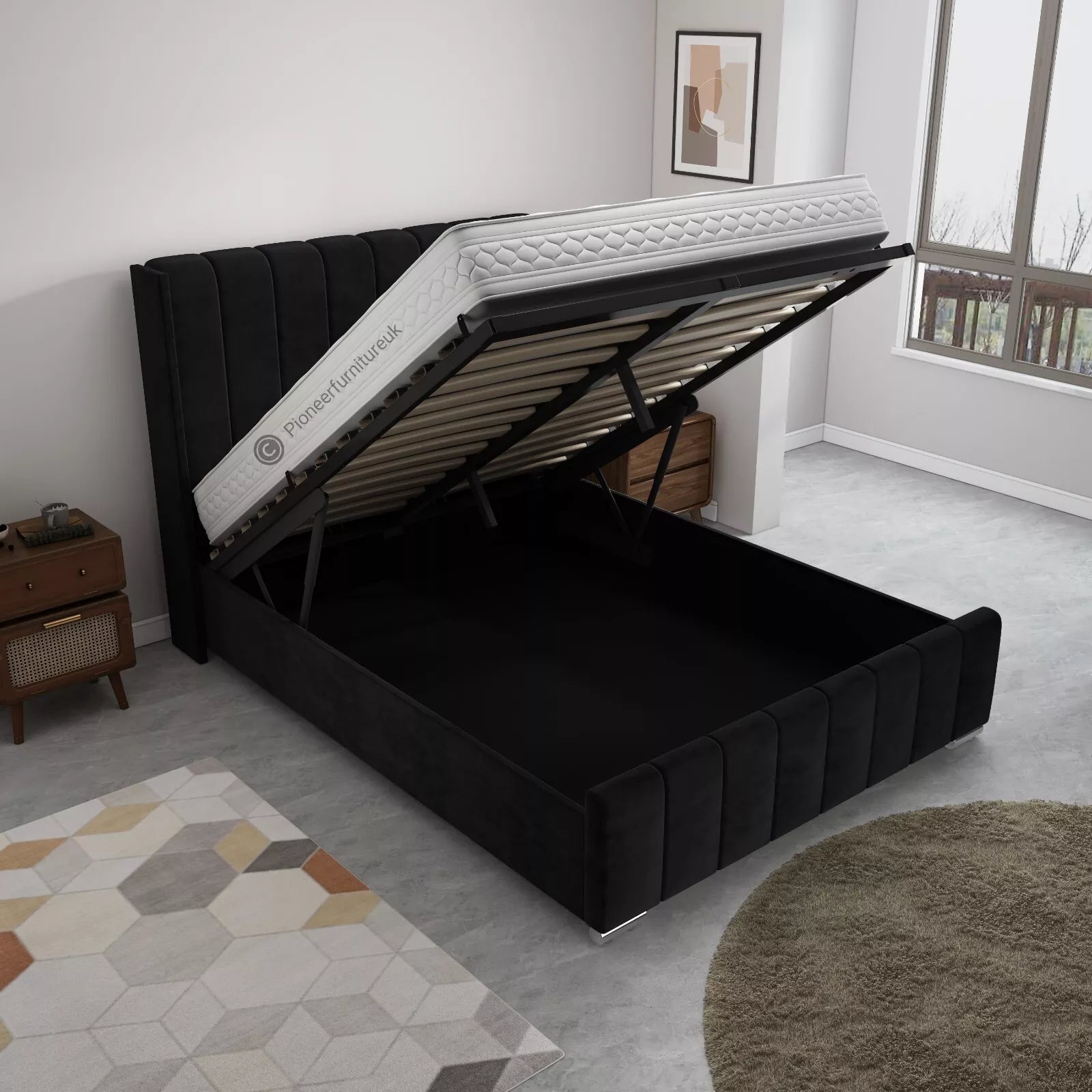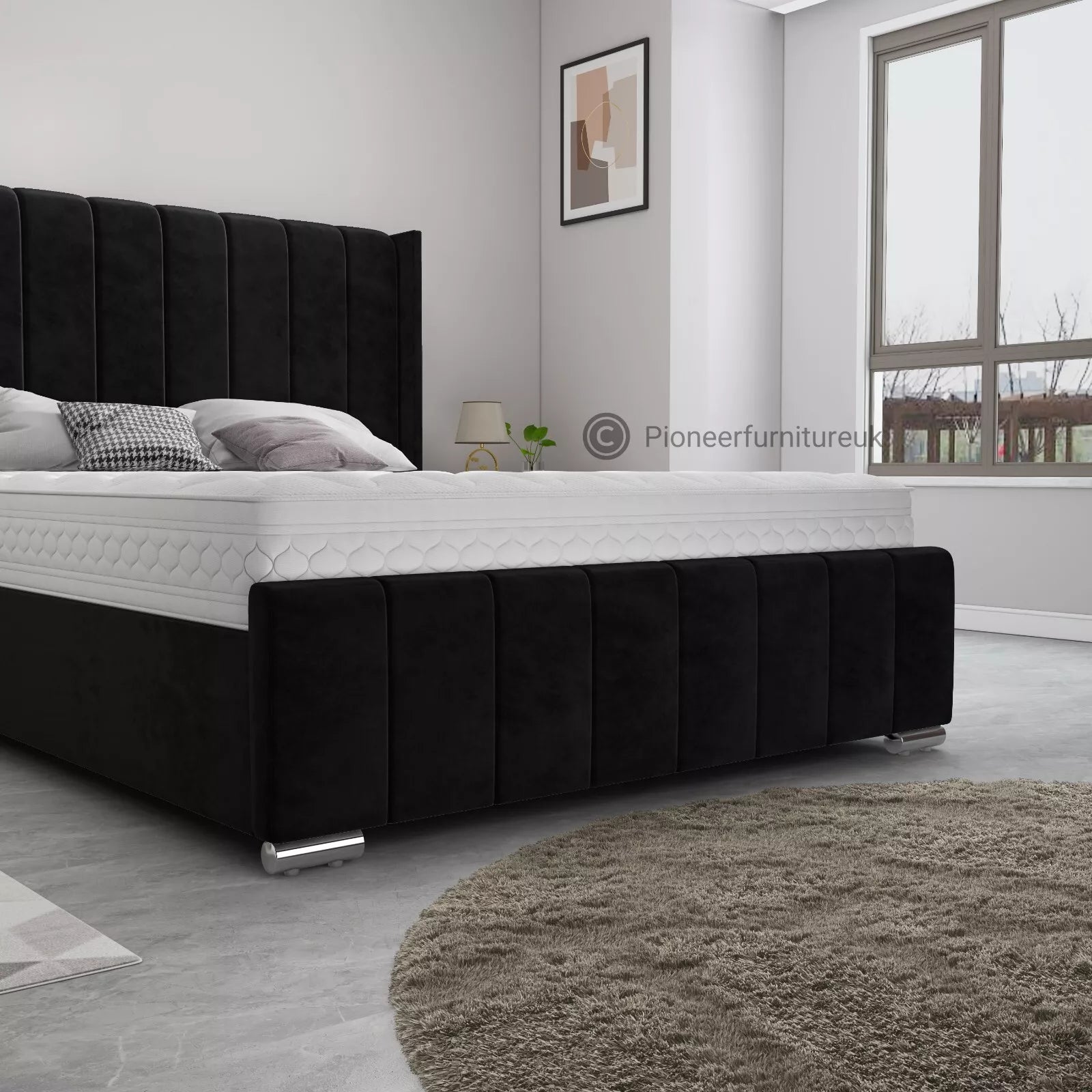 OTTOMAN STORAGE PANEL PLUSH VELVET UPHOLSTERED BED FRAME DOUBLE & KING SIZE WING